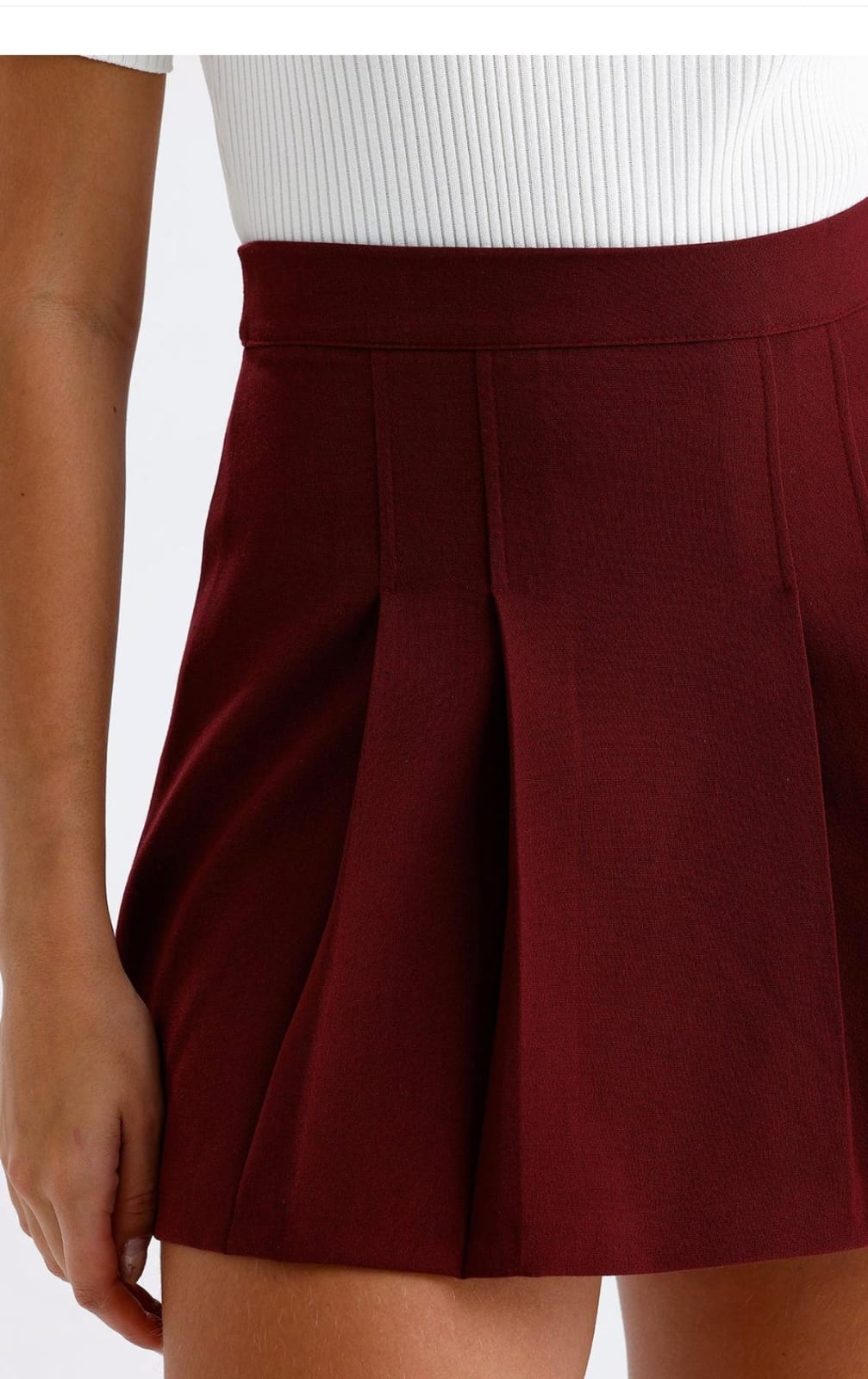 Kadın Bordo Pliseli Mini Şort Etek – Yüksek Bel Modern Skater Model